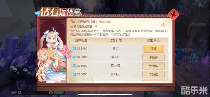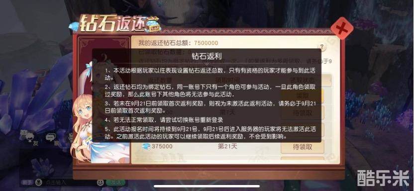 最高返还7500000,你敢信?后面的0太多,小编不敢相信自己的眼睛了~本次返利以造梦者们账号历史充值钻石总额,按照一定返还次数和单次返还数量进行绑钻返还。活动设置了多个充值总额区间对应的返利规则,最高档的返利绑钻高达7500000!但其实这并不是返利比例最高的,根据历史充值总额上限和返利钻石来计算的话,最高返利比例可以达到80%以上。大家可以马上进入【回归返利专服】,在活动页面就可以看到自己可以获得多少返利了!