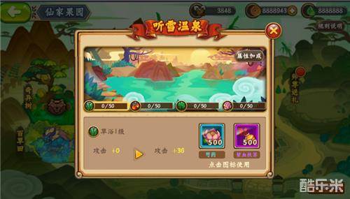 1) 听雪温泉的等级需要使用瑶草园的道具来提升。