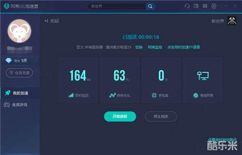 第三步:打开网易UU加速器搜索找到“新世界”并点击一键加速。