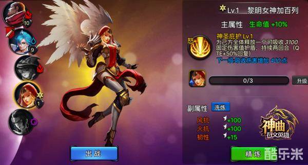 已经看过美艳的新英雄美乐蒂女神,我们再来回顾一下《神曲之符文英雄》现有的几位英雄和属性吧。战神肯特-提高攻击、风暴女神米瑞娜-提高暴击、智慧女神莉迪亚-提高韧性、黎明女神加百列-提高生命、正义女神贝拉-提高穿透,各位玩家可以随意选择已激活英雄,陪你一起冒险!
