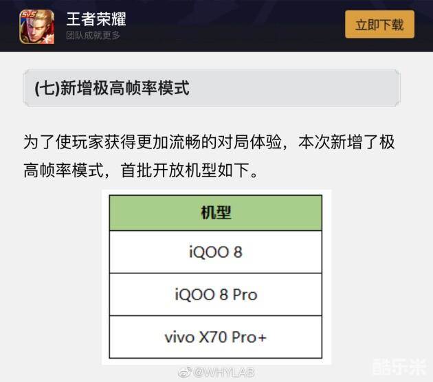 2021年9月9日,深圳——近几年,手机屏幕逐渐成为了各大品牌厂商展现技术水平的一大亮点,屏幕的形态不仅仅代表着一款手机的颜值,也代表着产品的极致追求。昨晚,在S25赛季即将更新之际,《王者荣耀》官方正式公布新增120Hz极高帧率模式。首批支持极高帧率模式的仅有iQOO 8、iQOO 8 Pro和vivo X70 Pro+三款机型。这一消息公布之后,同时在游戏圈和机圈引爆,赢得了市场的广泛关注。