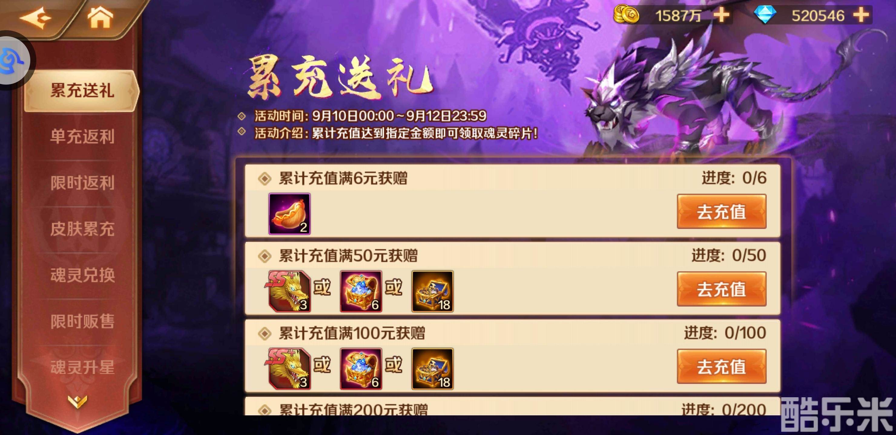活动期间,参与单充、累充,召唤暗魔邪神虎吧!