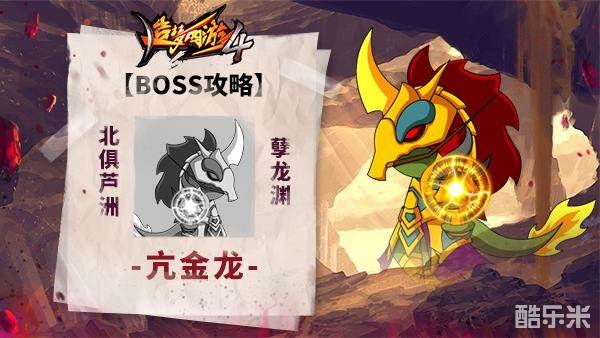 BOSS简介:东方青龙星宿之一,本体为上古蛟龙,修炼数千年化作人形,掌控火焰神威。电巫以蛟龙族长龙尸胁迫亢金龙助其镇守一方