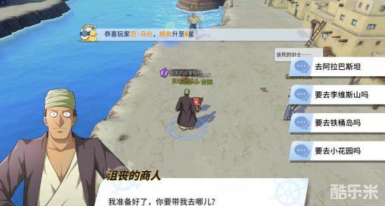 2、大概意思就是让玩家们去阿拉巴斯坦探险之类的,所以交谈完了之后就会弹出选择框框让玩家们进行选择,直接选择刚才商人提到的城市,接下来就会来到对应的城市,进行下一步的探险,然后根据提示一步步操作直到任务完成就可以了。