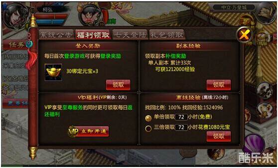 这是每天获取经验的重头戏,一定要记得领取,当然每次登陆都会弹出领取提示,如果不是眼拙应该不会错过。