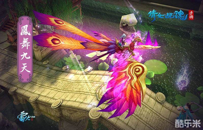 华美无双【凤舞九天】:巨大的翅膀缓缓扇动,紫色的羽毛散放着火焰般的光芒,身后拖着长长的金色尾羽,百年之王,华丽异常。如此尊贵的凤凰坐骑需要尊贵的地位才能拥有。