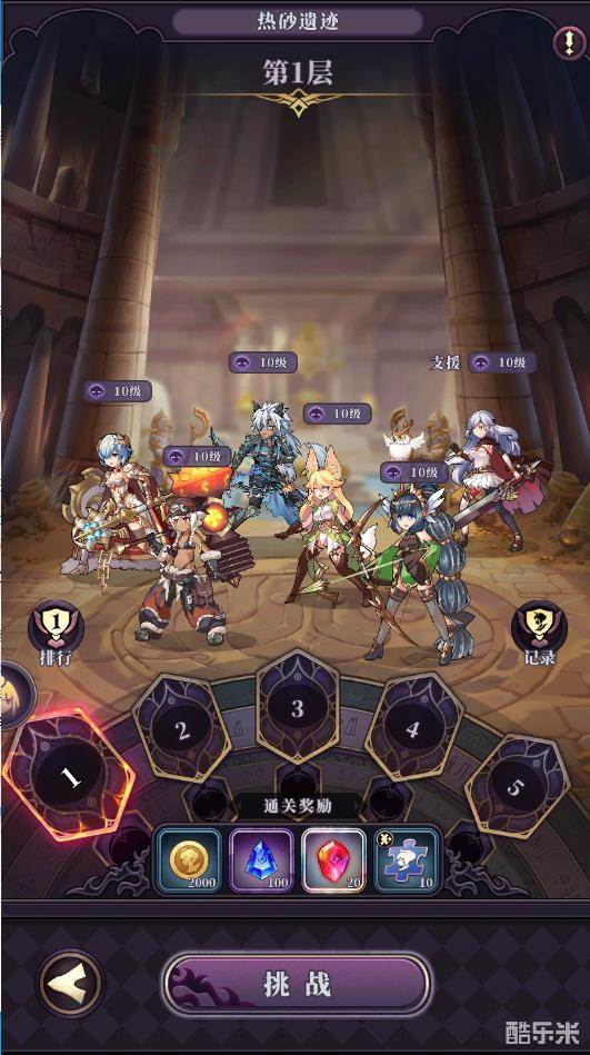 击败当前层的敌人,就可以获得丰厚的通关奖励并进入下一层,如果打不多敌人时候,可以尝试调整阵容或站位,如果还不行,就可以在通过记录中查看其他玩家的通关阵容哦。左侧还有一个排行按钮,也可以看你的排名。