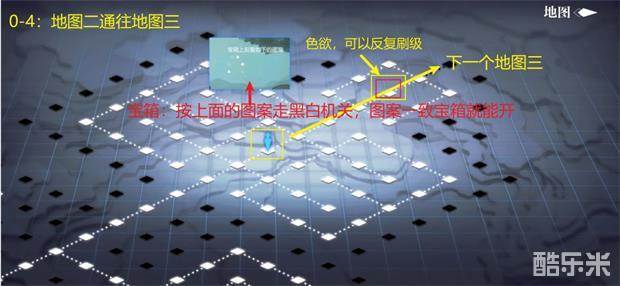 地图二:按下面的图例把地板机关踩成对应的图案就能开宝箱,
