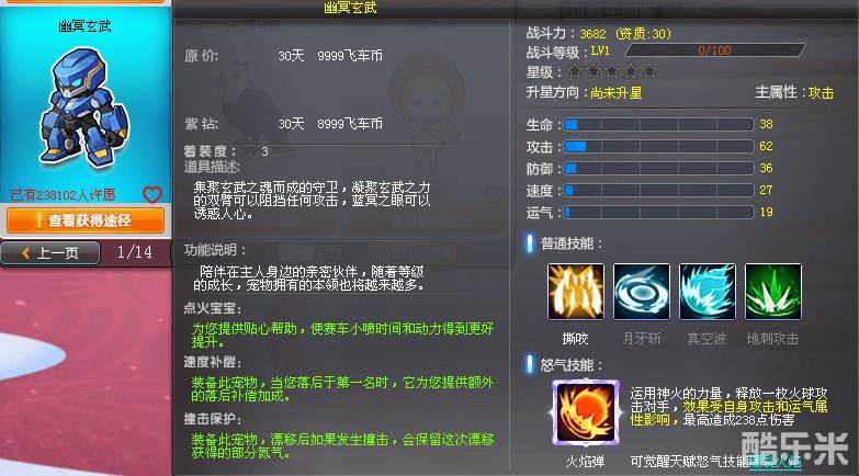 幽冥玄武是一个集聚玄武之魂而成的守卫,它是一个竞速宠物,性能和外形都是非常不错的。它那凝聚玄武之力的双臂可以阻挡任何攻击,蓝冥之眼非常诱惑选手的心。