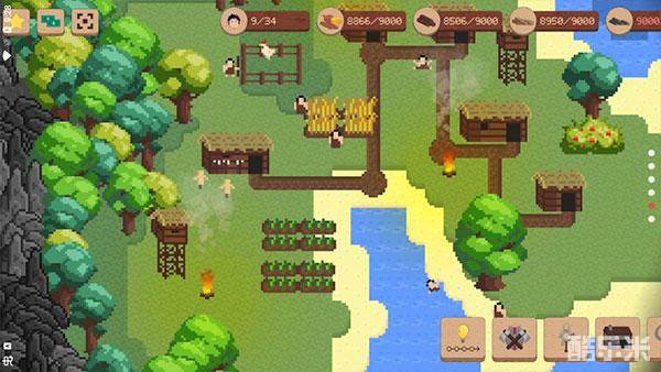 3、像素风格,融合模拟经营和策略战争,必须通过收集资源,扩大村庄规模,保护它免受不同时代的敌人攻击,推进文明。