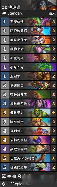 炉石传说2021年9月的天梯有很多变化,各种之前名不见传的卡组在9月的天梯里面崛起了,今天小编要为大家分享一套快攻猎的卡组搭配,能够让大家能够快速的了解这套卡组的优先,下面跟着小编一起来看看吧。