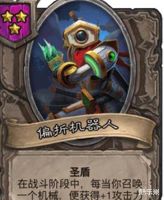 机杂的强度经历了这么多版本的检验始终维持在梯队,它的实力就不用多说了,主要来说一说机杂的核心偏折机器人,偏折机器人的效果真的非常之强,每召唤一个机械随从就获得圣盾和+1攻击力,机杂主流都是两个偏折机器人都贴上31磁力,然后剩下五个随从都选择有亡语的机械随从,这样可以保偏折机器人可以一直补上圣盾,再配合机械金刚狼和武道家的buff,提升全部机械随从的攻击力,因为有24贴膜的存在,机械随从只需要不停提升攻击力就是大的提升了。