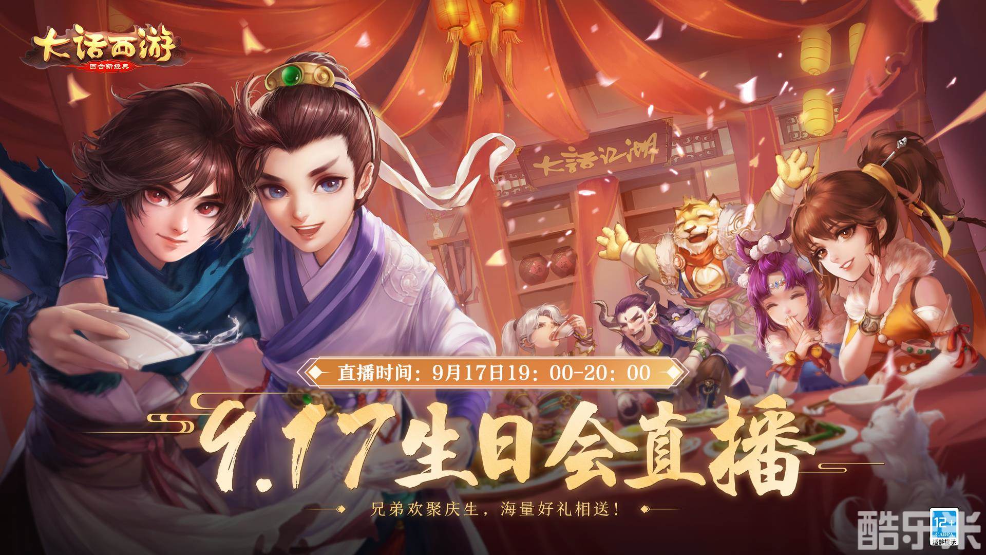 9月17日19:00至20:00,侠士们记得一起来观看最为精彩的9.17庆生大会直播,届时不但将现场揭晓【千灯送福】活动头奖得主,还有大话×团油1吨汽油,大话×闪电潮牌六周年T恤、大话×周六福“幽游”金扇吊坠等海量全新联名实物好礼送给你!更多游戏资讯,请关注官网、官方微信、微博、大神。