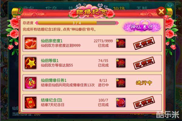 ④ 结缘后夫妻共同完成13次情缘任务。