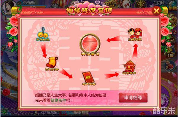 3、双方组队前往仙阳城-月老先处,队长(男方)支付584520银两作为登记费用发起求婚,女方同意即可结成仙缘