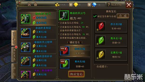 l3个同属性同等级的宝石可以合成1个更高级的宝石;