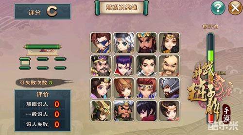 另外在历练系统里值得一提的是慧眼识英雄这个玩法,考验眼力和反应能力,玩起来更是兴趣盎然。在这里可以收获的奖励是英雄碎片,找出和图中卷物相同的画面即可,左方的卷物会慢慢打开,人物的容貌可由下往上展现出来,游戏的难度提示分为3种规格,游戏的结果根据玩家判别的速度而定。共需要识别6次,若识别错误4次游戏将会提前结束。