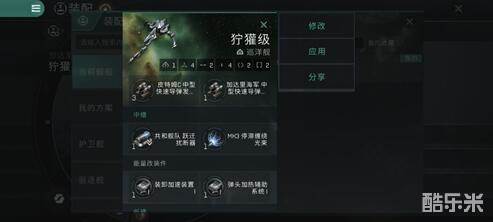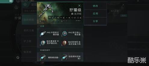 导弹制导计算机、自适应全能立场、中型护盾回充增量、中型加力燃烧器,战斗改装件:火箭燃料缓,冲隔离装置、液压仓推进器;