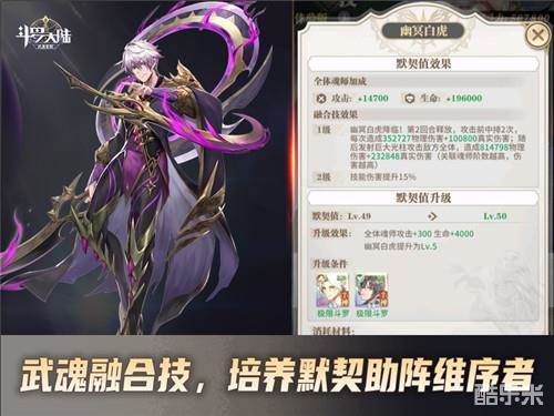 最后来看一看《斗罗大陆:武魂觉醒》武魂融合技玩法。该玩法在主角等级85级后开启,不过每个魂师的融合技需要玩家解锁后才能使用。玩家需要培养指定魂师的默契值,当达到一定等级后就可以解锁融合技。除此之外还能提升融合技等级,同时增加全体魂师的属性。