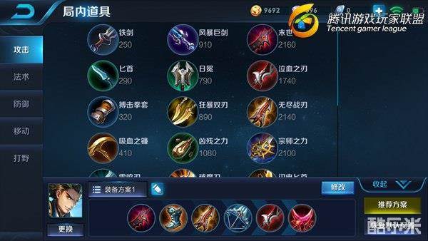 六神装:末世、急速战靴、无尽战刃、破甲弓、泣血之刃、影刃