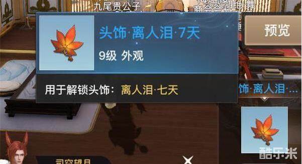 奖励:头饰·离人泪·7天,20瑰华或200绑定玉续费可永久