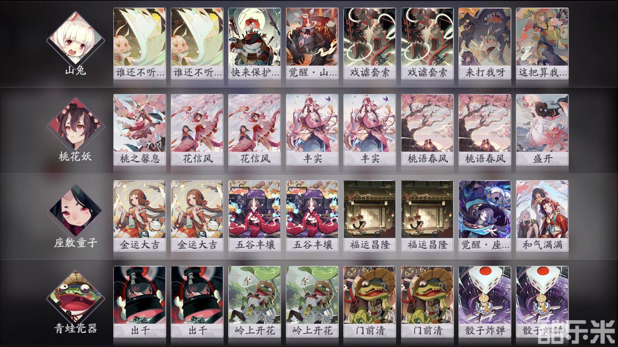 座敷童子:金运大吉x2、五谷丰壤x2、福运昌隆x2、觉醒·座敷童子、和气满满