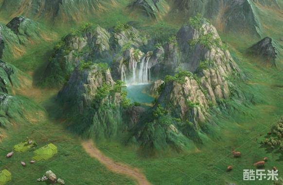 更新后,则有了更真实的环山抱水地形,以及瀑布、树木、湖泊等细节风景。