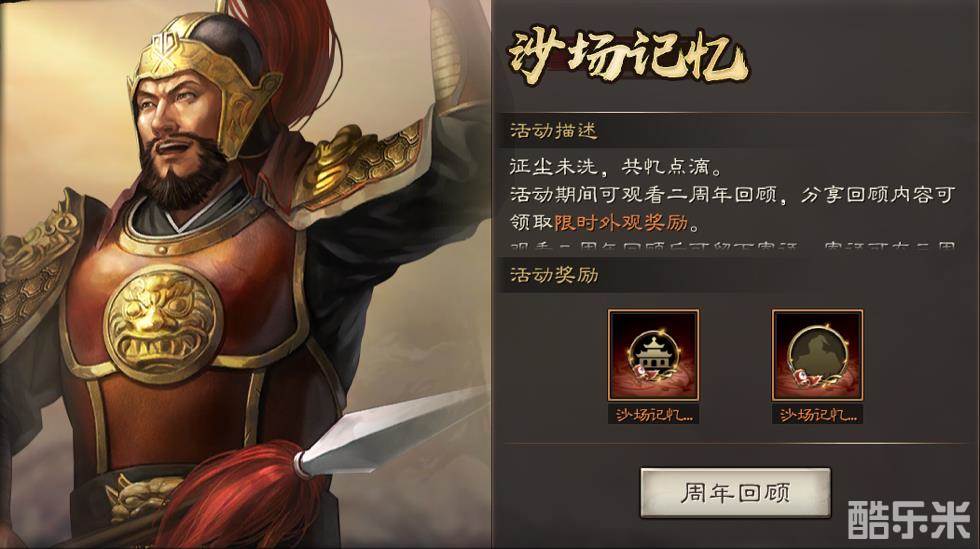 沙场记忆,将邀请玩家共同回忆过去两年的点点滴滴。玩家只要在活动期间观看二周年回顾,分享回顾内容,即可领取限时外观奖励。