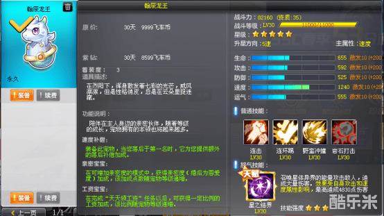 翰辰龙王属性为35资质的速度宠物,“5速”的策略来进行宠物对战。