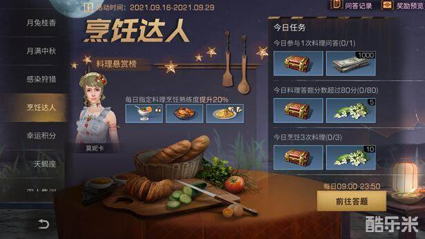 3、明日之后中秋节玩家可以通过赠与,每日料理问答任务获取更多的奖励哦。