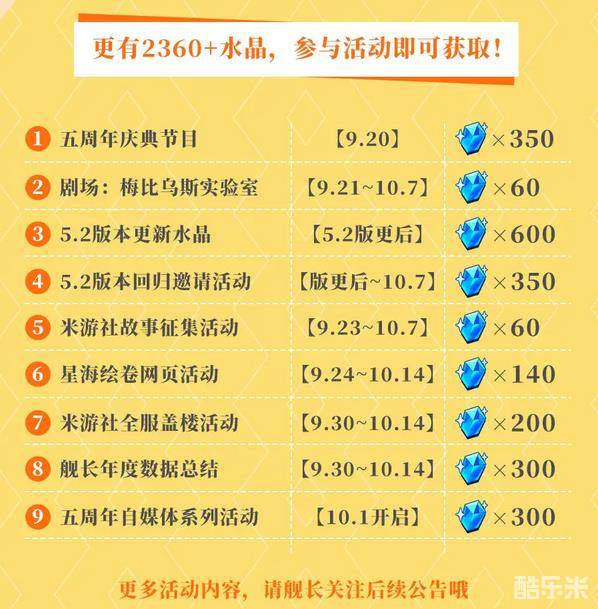 11.还有官方说明的额外可以获得的水晶,大概两千多吧。这些水晶能获得的就去试一下,有些费力不讨好的活动也可以适时放弃。