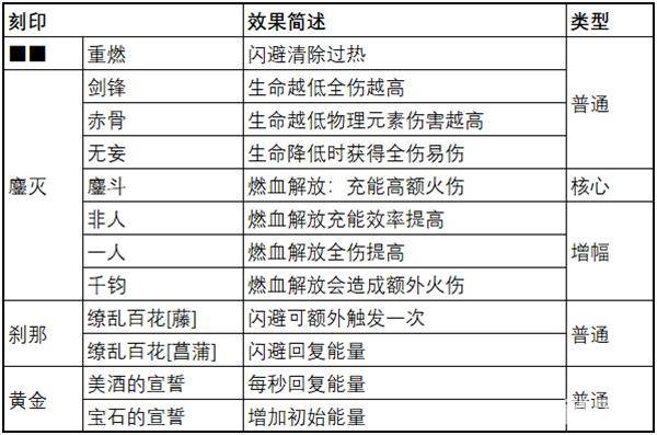 >专属刻印:【重燃】 祝福,闪避清除过热。第一层未拿到此buff可以重新开始。