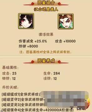 名将张良不仅在战场上的表现让人眼前一亮,收集到他的同时还可和虞姬开启名将图鉴“江山还是美人”,增加25%的伤害减免。此外,图鉴的强化和升阶也能提升战力,助力玩家在战场上的表现。