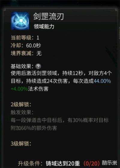 我觉得这不是一个收益足够稳定的领域,当然你脸够白甚至可以24次全触发那肯定是首选,他所有造成额外伤害的手段全部建立在你印记挂上之后,如果你脸足够黑一次领域一个印记都没挂上的话那这个领域就等于是白板领域天然少两个技能,所以综合来看我并不推荐选择剑罡领域(如果就喜欢花里胡哨不在意强度那也可以无脑剑罡)