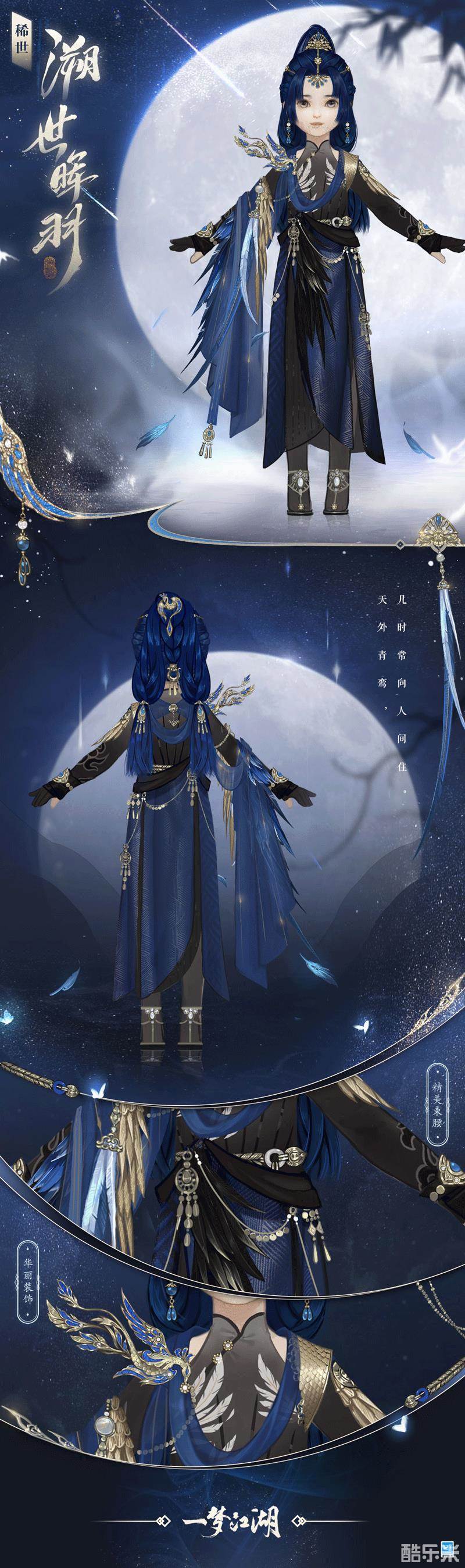 《一梦江湖》衣锦宴行系列首套稀世时装“溯世晖羽”登场!青羽鸾翼与鎏金相间,好似误入一场奇幻梦境,快一起换上新衣在中秋相会吧!