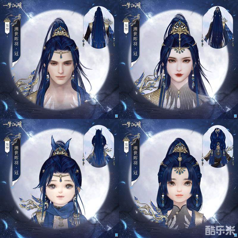溯世晖羽那最瞩目的发冠,不仅发型设计精美,还采用了独特的青蓝色彩搭配,体现那一场青鸟带来的奇幻盛宴。而且不仅发丝细密,发质也具有独特的光泽,这是因为云锦楼在准备这个发型的时候,特地增强了发丝上的光照漫反射效果,这样也就使得我们在不同的环境光和角度下,都能看到光泽夺目的溯世晖羽之冠。