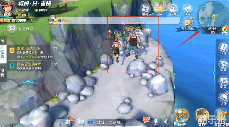 1、接到任务的第一件事情就是去解锁糖汁村,在这里玩家要找到一个人,他的名字是黑猫海贼团,找到以后,玩家要做的是直接对其进行一番教育;