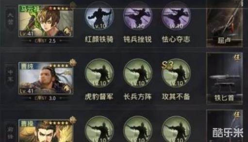 这个阵容就是小编推荐给大家的指甲刀队的搭配了。在阵容里马云禄是阵容的输出点,曹纯起到一个辅助的作用,同时曹操也是可以防止队伍被人秒杀暴毙的,所以整个阵容的搭配还是非常不错的,大家是可以到游戏里试一试这个搭配的。