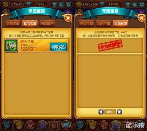 军团宝藏功能,带给大家的收获就是宠物进化所需要的材料以及万能符文。每位勇者每天有4次免费解锁宝箱次数以及6次协助解锁次数,也就是说玩家每天可以获得10次奖励。