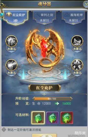 每个魂导器都有数个专属的技能,激活技能之后可获得大量属性提升,比如斗罗大陆中的红尘庇护就有四大技能:红尘眷恋、红尘相护、向死而生、死亡漩涡。
