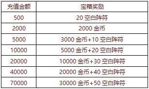 【活动内容】金币奖励满额返还,额外赠送大量空白阵符,天地水火,风雷山泽,奇门阵符,尽收囊中,一切尽在本期月末超值大放送。
