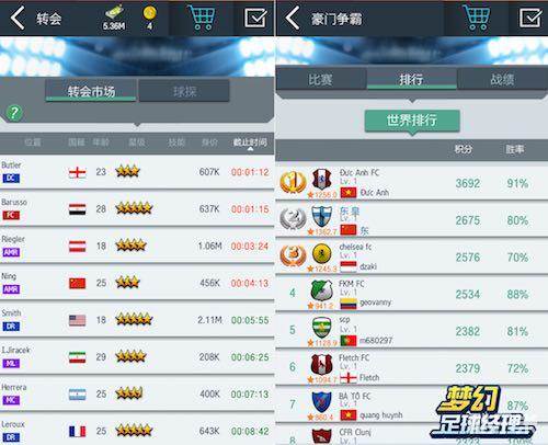 作为游戏最大特色,《梦幻足球经理》的转会市场可谓十分热闹,这里都是玩家将自己不用的球员挂牌出售,虽然有可能是其他玩家的替补队员,但还是会有一些高挂牌的五六星高阶球员出现。转会市场的球员经过两轮竞价拍卖,玩家在时间结束前要至少进行两轮出价,才有可能拍到想要的球员。有经验的玩家会选择在竞拍即将结束的时候出手,能大幅度增加抢到的心仪球员的概率。