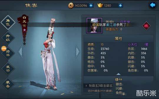 赤练魔闪:二段技,第一段两次攻击后将刀插入敌人身体,随后拔出,造成193%+*攻击伤害;第二段消耗70内力快速翻滚到敌人跟前插入第二刀,造成161%+*攻击伤害。(大天位5星开启额外天赋)