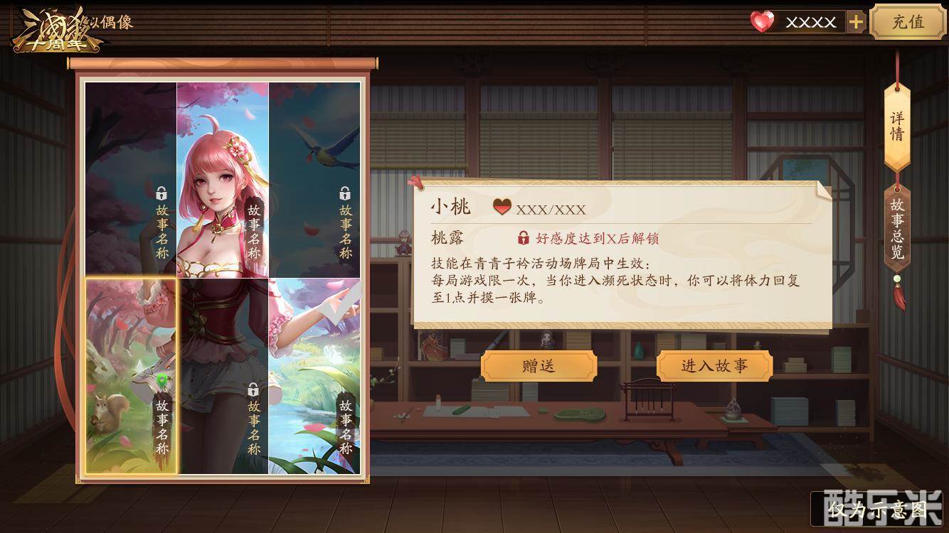 那么,如何从该玩法中快速收获“第一桶金”呢?我们不妨先选择一位“一见钟情”的虚拟偶像,与其一同经历全部的人物故事,并在关键节点使用“心心”作出选择,提升好感度并达成不同的结局。(“心心”为活动场活跃道具,玩家参与活动场即可获得。)当好感度达到指定等级后,就可以获得这位虚拟偶像的助战技能,在活动场牌局中获得增强哦!