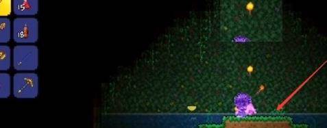 3、进入腐化之地底部后,可以使用镐子来进行开采(但是镐子的速度较慢,每次只能破坏一个体块,可以使用一些爆破道具来进行增强开采速度);