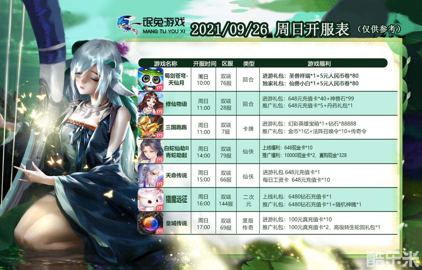 氓兔游戏官网-9月26号开服表-下周新游预告