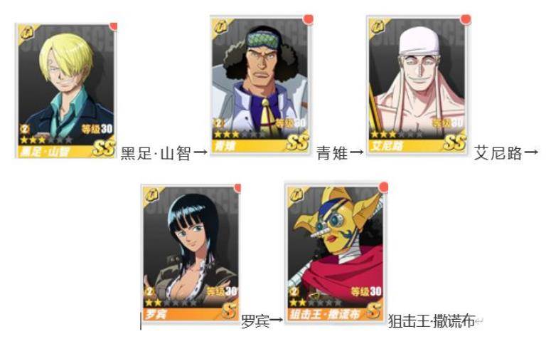 ①助战伙伴推荐瓦帕选择黑足·山智、青雉、艾尼路、罗宾以及狙击王·撒谎布。