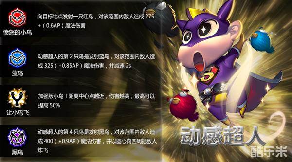 【解读】动感超人的红色小鸟,可对目标范围内的敌人造成法术伤害。