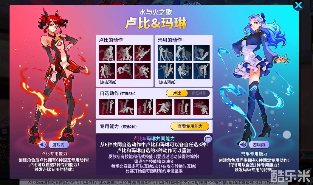 卢比&玛琳为全新的双重角色,每个角色拥有专用动作各9个。可以在比赛中切换角色至多5次。