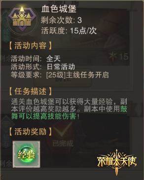 游戏里,血色是我们第一个开启的副本,很多人都特别喜欢这个副本,这个副本有大量经验,每天可以进3次。副本评价越高经验越高,所以这里我们百分百要使用鼓舞提升伤害。因为伤害越高推关层数就越高,层数越高也意味着经验越多奖励越好!另外有一个技巧是,提升VIP等级可以额外购买更多次数,所以你看大神等级那么高,差就差在这里。这种经验副本不用考虑肯定要拉满的。